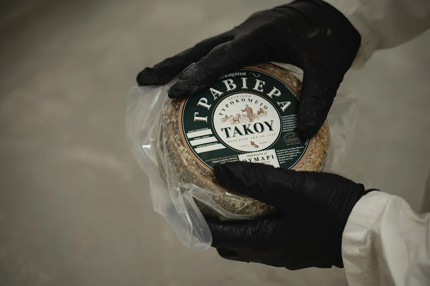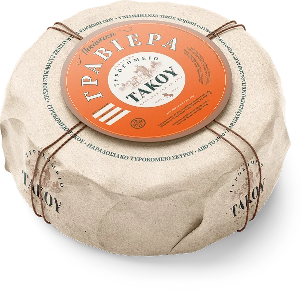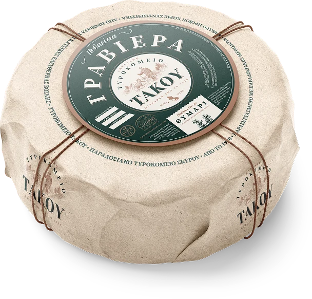 Η Πυθαρίσια Γραβιέρα είναι ένα ξεχωριστό τυρί από πρόβειο και κατσικίσιο γάλα, φτιαγμένο με παραδοσιακές σκυριανές μεθόδους. Ωριμάζει για μήνες σε πήλινα πιθάρια με στρώσεις αρωματικού θυμαριού, αποκτώντας πλούσια γεύση και έντονο άρωμα. Το Τυροκομείο Τάκου αναβιώνει αυτή τη σπάνια τεχνική, δημιουργώντας μια γαστρονομική εμπειρία που συνδυάζεται υπέροχα με λευκό κρασί.
