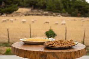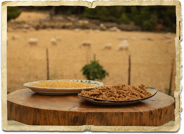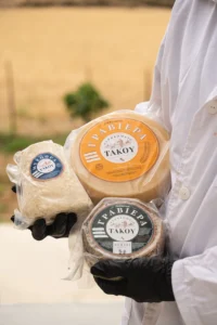 Χρησιμοποιούμε μόνο φυσικά υλικά: γάλα από τα ελεύθερης βοσκής αιγοπρόβατά μας και τοπικά βότανα που συλλέγουμε οι ίδιοι, χωρίς τεχνητά συντηρητικά, αρώματα ή τεχνητές ουσίες. Με σεβασμό στη φύση και τα ζώα, παράγουμε τυριά που τιμούν την παράδοση και την ηθική τυροκομία.